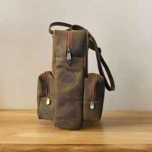 Producto elaborado con cuero graso 100% natural, tamaño para un termo de 2 litros max, cuenta con dos bolsillos para llevar la taza matera y el mate